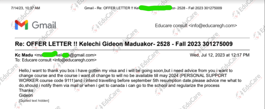 EduCare Consult, a perfect company, helped me make my dream come true by searching for a school for me, a house and everything. Since 6 months I've been here in Vancouver and I can tell you that everything here is perfect.