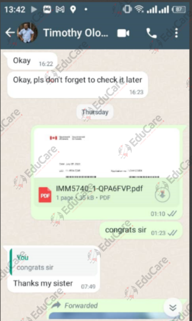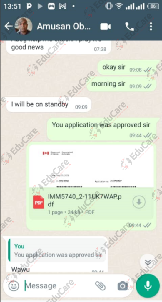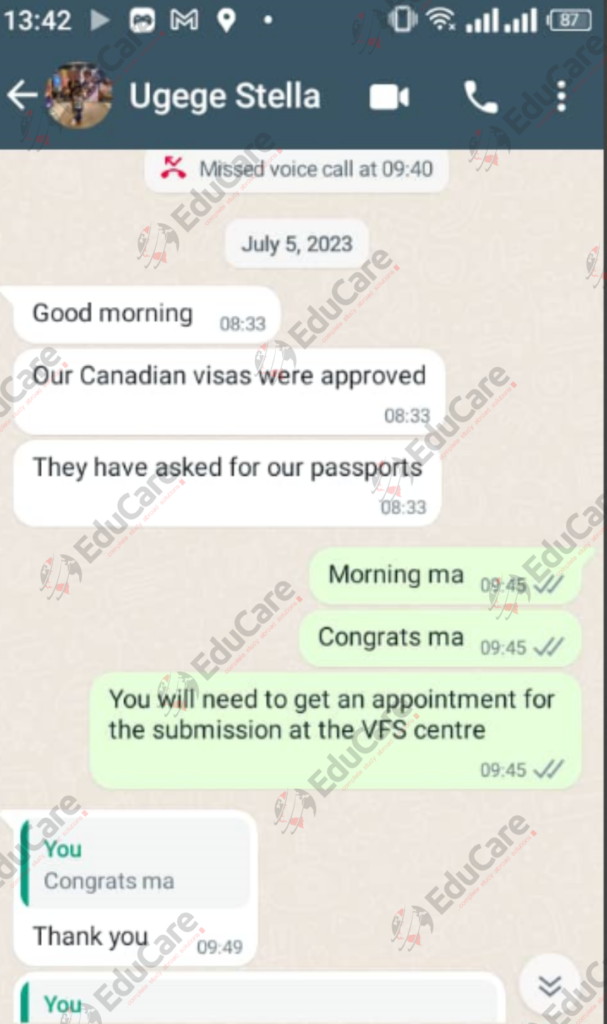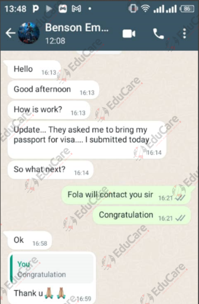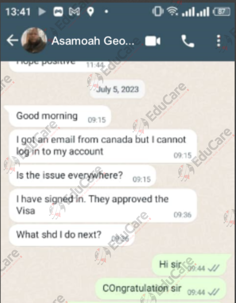 It has been years since I wanted to study abroad but never succeeded. Each time, I had difficulty obtaining the visa...However the first time I contacted EduCare Consultl, I knew I had made the right choice...Indeed, not only did I obtain an acceptance in the first university...but in addition, obtaining the visa was also easy.